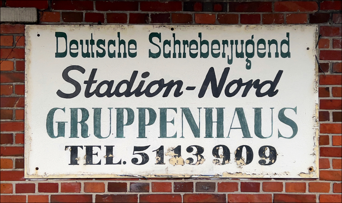 Ein handgezeichnetes Schild an einem Gebäude, das an der Ecke Alsterkrugchaussee/Borsteler Chaussee steht. Das denkmalgeschützte Gebäude war zunächst eine Pumpstation mit Bedürfnisanstalt, später dann eine HEW-Wandlerstation, bis 2008 ein Treffpunkt der Schreberjugend. Aktuell scheint es nicht genutzt zu werden. Mehr Informationen zur Geschichte des Gebäudes finden Sie hier: Kommunal-Verein Großborstel, Lebendiges Großborstel und Landesjugendring Hamburg.